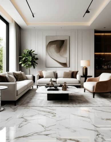 Гостиная: лучшие решения с крупноформатной плиткой