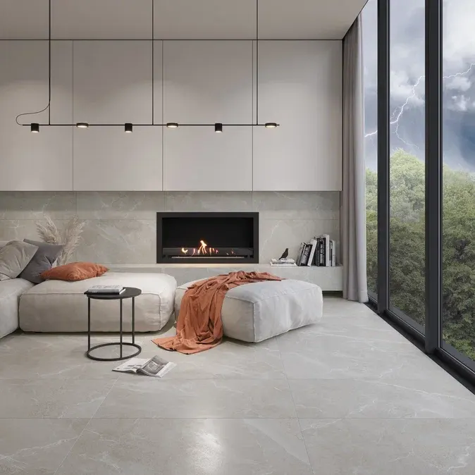 Тут важен баланс: красиво, но не скользко. Для пола лучше использовать матовую или структурированную поверхность, особенно в прихожей. Цвет — от светлого до глубокого серого, как в коллекции Гроза.